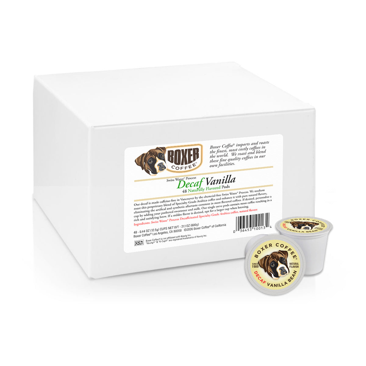 Ingredients: Specialty Grade Swiss Water® Decaffeinated Arabica Coffee with 100% Natural Flavoring